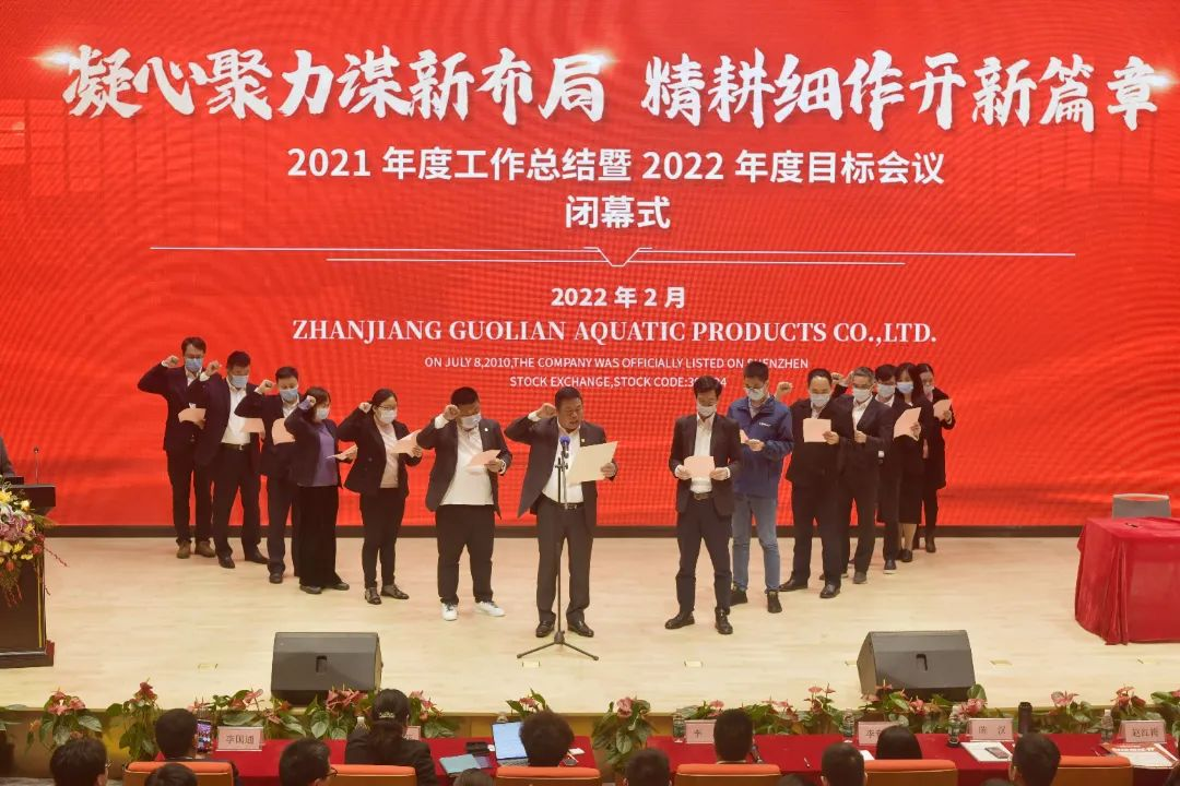 2月7日至12日,“凝心聚力創新布局,精耕細作開新篇章”——2022國聯水產集團年度經營會議在湛江總部隆重召開。集團董事長李忠與各級管理干部、優秀員工代表等齊聚一堂,共襄大計,攜手創造更加輝煌的未來。
