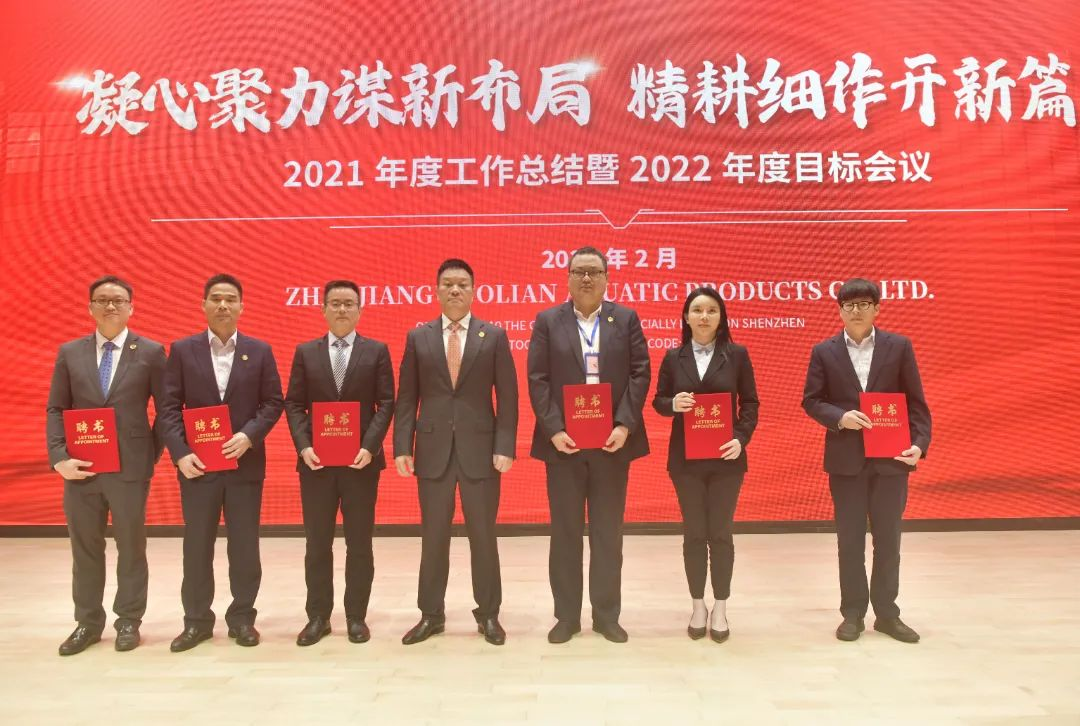 會上,李忠董事長回顧總結了國聯水產過去一年的豐碩成果和尚存短板,同時圍繞集團“五五規劃”戰略和“三大必勝之戰”(保存量;全面推進預制菜轉型,打造量利雙高明星產品;降低成本,提升產品競爭力),明確了集團2022年的工作目標及方向,展望了新一年的宏偉藍圖和二次創業高質量發展的實現路徑。