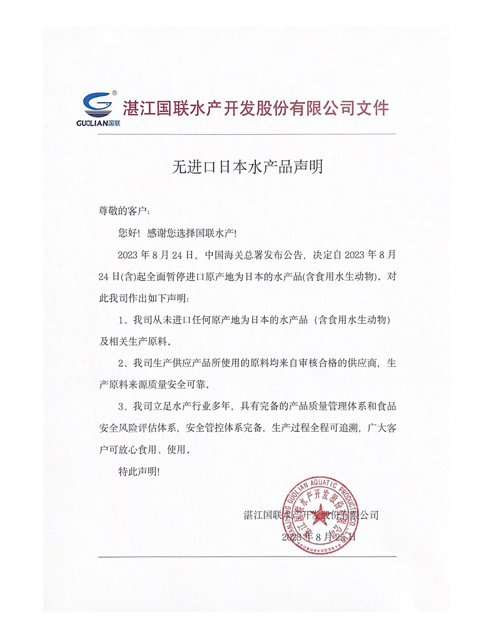 無進口日本水產品聲明